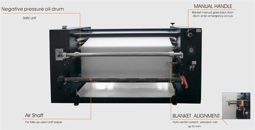 | 1. Advanced technology of Electrical control ,blanket can separate from drum by manual/automatic. | |||||||