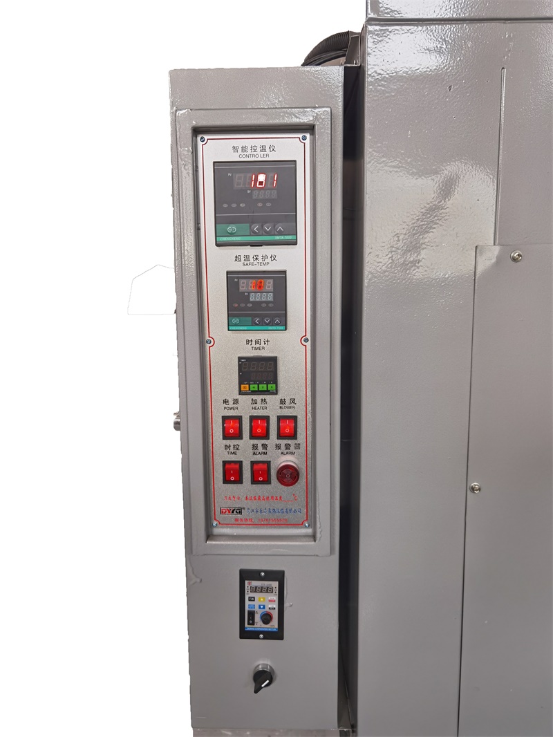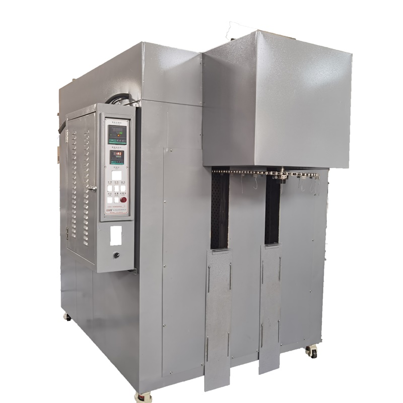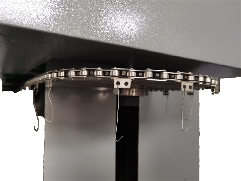 | Machine structure overview | This type of equipment used on both sides of the casing duct wind, corresponding to the top of the air duct cyclic heating return air pressure type, form a complete set of stainless steel transmission chain circulation, heating pipe installation within the oven side duct, circular motor installed at the top of the oven, the previous design combined to open the door, can adjust the size of the door, the corresponding internal hanging chain operation, convenient take put products, hook installation for socks. The electrical control box is mounted on the side of the box, which can effectively prevent the high temperature in the box from affecting the aging of the electrical components in the electrical box. | |||||